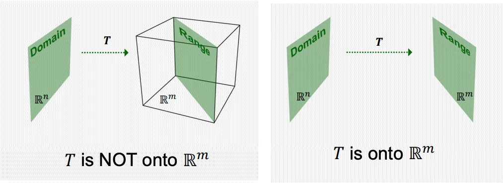 일반적으로 입력 차원 이 출력 차원 보다 크다면, onto 를 만족할 가능성이 높다, 하지만 반대의 경우 절대 onto를 만족할 수가 없다.