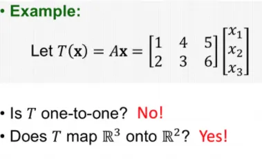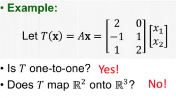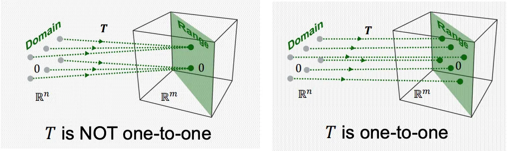 행렬 의 column vector들이 linearly independent 하다면 one-to-one 하다.