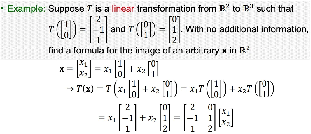 행렬 를 linear transformation 의 standard matrix 라고 부른다.