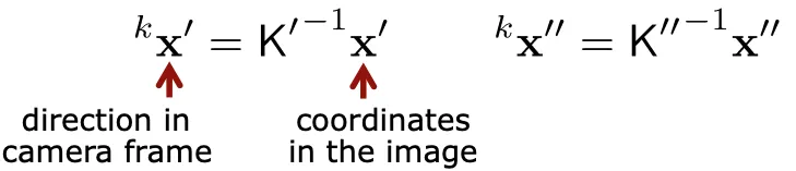 위와 같은 식을 coplanarity constraint for calibrated cameras 라고 부른다.