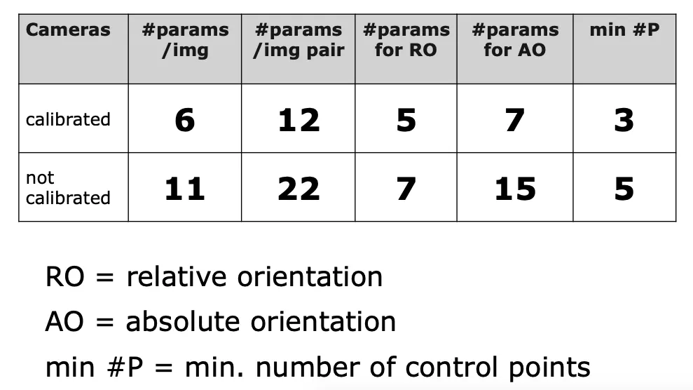 Uncalibrated cameras : ([5 intrinsic + 3 for rotation + 3 for translation] * 2 for camera pairs)