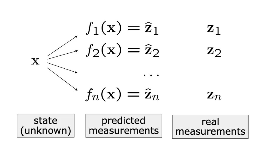 least squares 방법은 observation에 근거해 파라미터나 state를 추정하는 테크닉입니다.