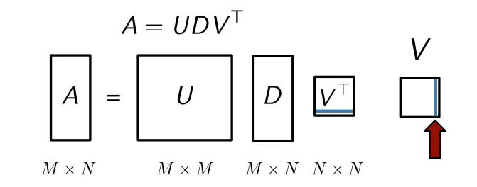 행렬 는 앞서 다룬 행렬 의 각 singular values에 해당하는 singular vector를 row형태로 나열한 것이며, 이를 행렬 로 transpose해서 살펴보면,