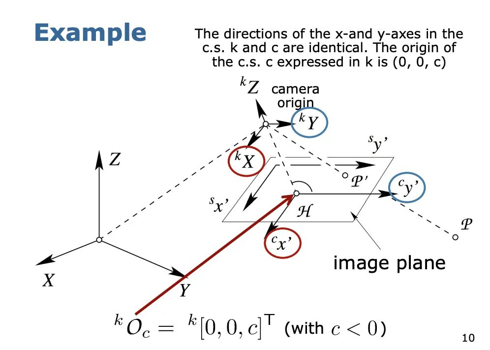 모든 광선은 곧은 직선의 형태로 나타내며 Projection center를 통과한다. 이 점은 카메라 좌표계의 원점 이다.