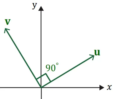 를 만족하기 때문에 내적값이 0이 된 것이며 벡터 는 서로 수직이다.