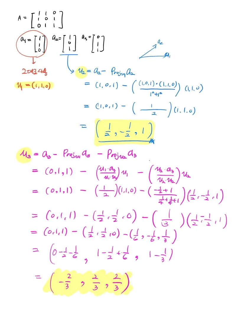 이 방법은 상의 subspace에서 orthogonal 하거나 orthonormal한 basis를 만들기 위해 사용되는 단순한 알고리즘입니다.
