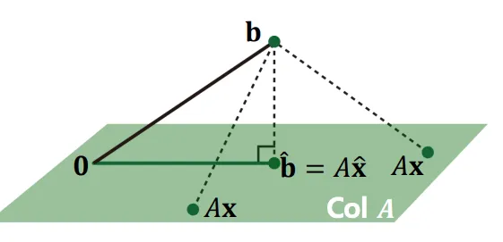 따라서, 우린 벡터 와 가장 가깝게 위치하는 위의 한 점을 찾는것, 그 때의 를 찾는것이 목표이다.