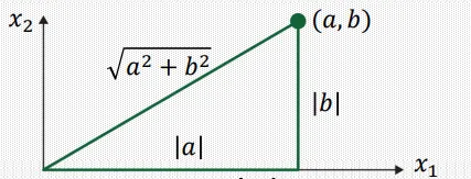 이러한 norm은 기하학적으로 원점으로부터 까지를 잇는 선의 길이를 의미한다.