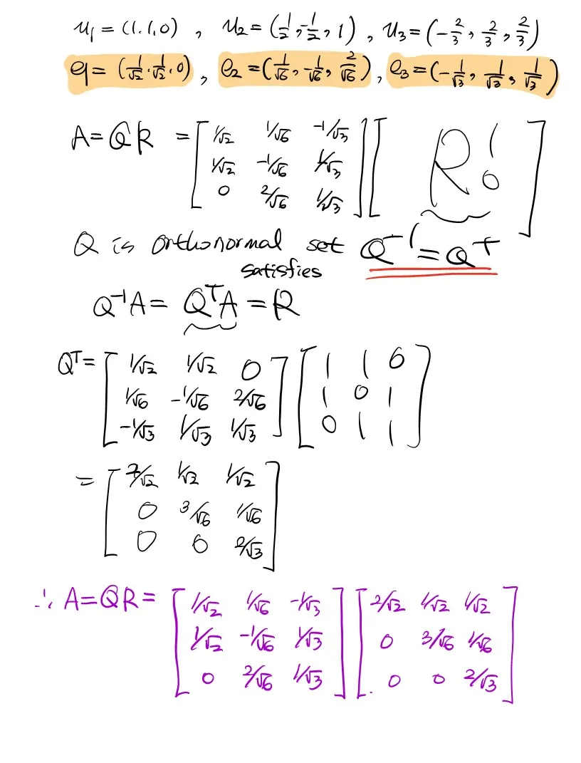 아래 풀이는 임의로 주어진 행렬에 대해 QR decomosition을 해보는 예제이다.