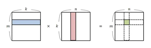위와 같은 곱셈 방식을 반영하여, 행렬간의 곱셈 또한 outer product의 합의 형태로 표현하는 방법이다.