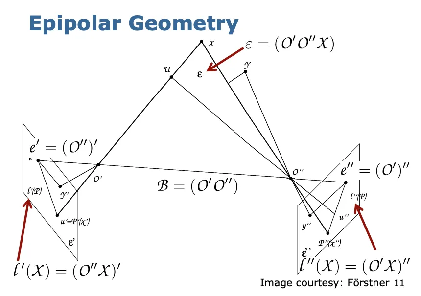 목표 : 첫 번째 이미지의 점에 해당하는 두 번째 이미지의 평면에 존재하는 점 를 찾기